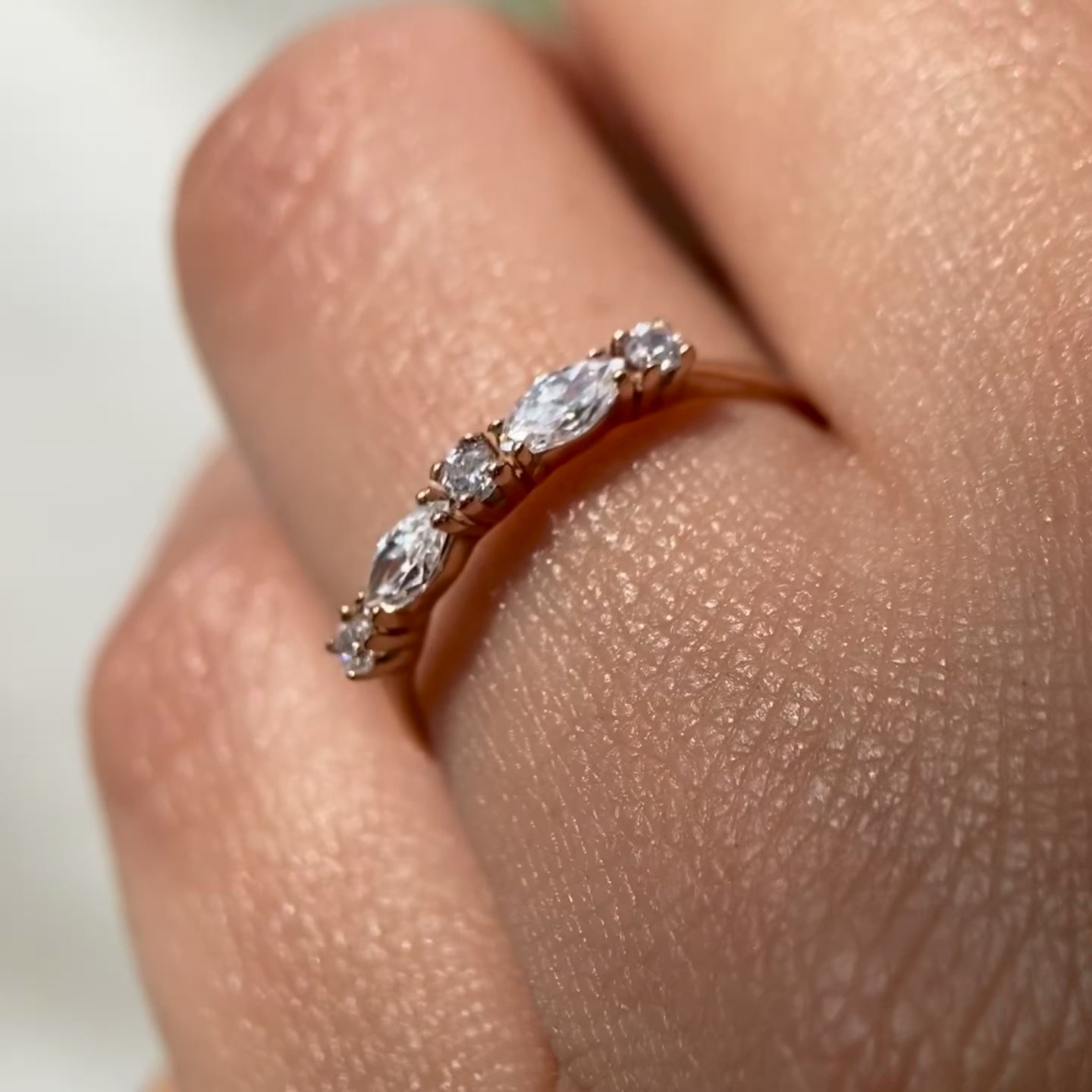 Half churumbela ring in 14k rose gold with white zircons MAN257