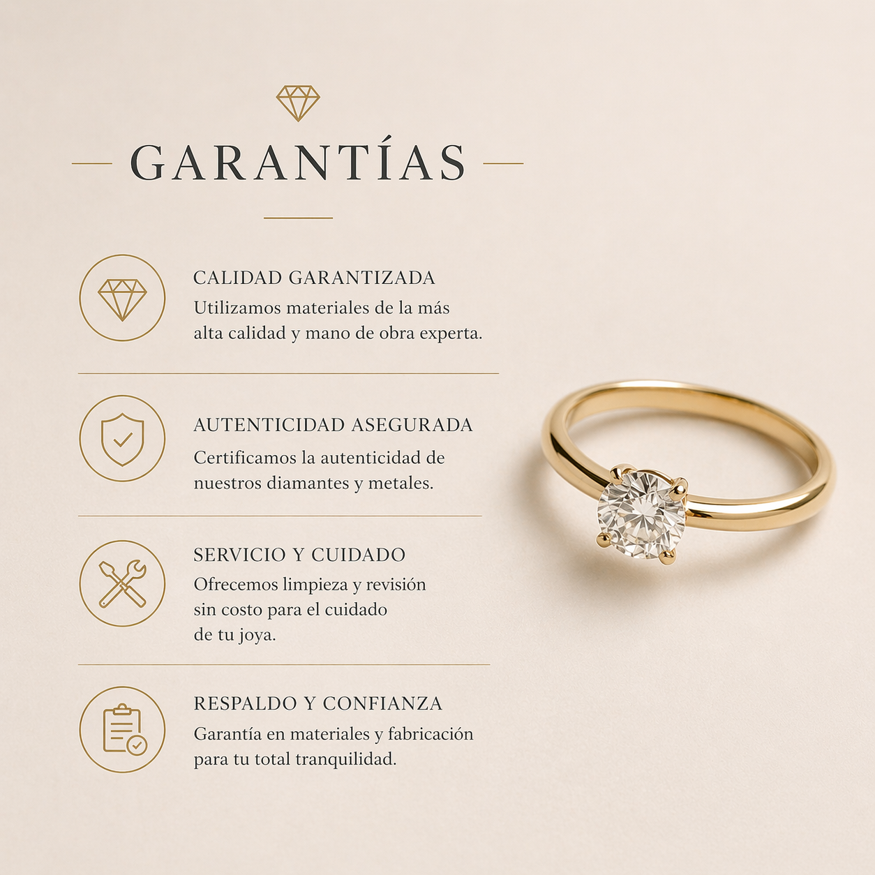 Calidad, autenticidad y respaldo en cada pieza. Conoce las garantías que acompañan tu joya.